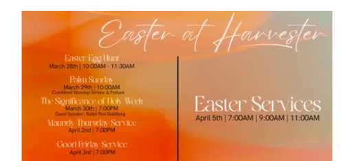 Easter Services: April 5th, 7:00AM, 9:00AM, 11:00AM